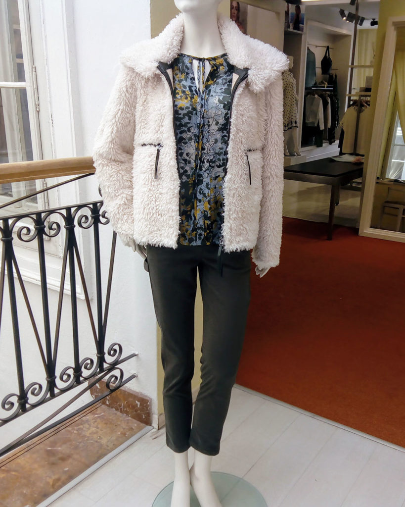 Modely neformálneho štýlu sú vypracované hlavne z prírodných materiálov. Blúzky a šaty z jemného hodvábu, úplety z vlny a mohéru, nohavice a mikina z bavlny s pridaným pohodlným elastanom. Krátka kožušinová bunda je z praktického a na dotyk veľmi príjemného polyesteru.